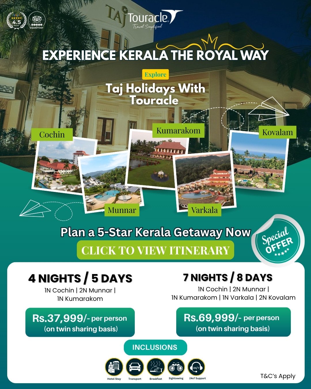 Discover unparalleled value with Touracle, your full-service in-house holiday package tour operator. Specializing in unique and affordable travel experiences across South India, we are committed to delivering exceptional value for money, trust, transparency, and top-quality customer service. Proudly accredited by leading industry bodies such as KTM, Kerala Tour Operators, TAFI, and ADTOI, our dedicated team manages every detail from your initial inquiry to the completion of your trip. Relax and enjoy a stress-free vacation with Touracle—where your dream holiday becomes a reality!